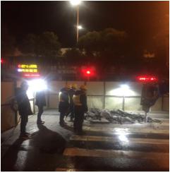 21時(shí)30分,工程公司專(zhuān)職安全人員負(fù)責(zé)道路安全環(huán)保圍擋及警示隔離,疏導(dǎo)交通,安全科學(xué)引導(dǎo)搶險(xiǎn)車(chē)輛、設(shè)備和過(guò)往車(chē)輛及行人。第四項(xiàng)目部主任吳禮軍與襄城管網(wǎng)經(jīng)理等其他同事認(rèn)真細(xì)致對(duì)漏點(diǎn)周邊地下情況進(jìn)行安全排查,確保無(wú)隱患的前提下,機(jī)械對(duì)路面進(jìn)行細(xì)致勘探開(kāi)挖,尋找漏點(diǎn)。